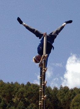 その後はいよいよ御建柱。なかなか見え無いなあと思っているうちに、いつの間にか一番前に出ていた。いやーよく見えた。いつもは則の方がずーずーしいのに、今回は私の方がどんどん前に出ていったようだ。少しの隙間を見つけるとさっと移動という風に。これもなかなか見応えがあった。が、ずっと立ちっぱなしで疲れた。前宮一の柱だけを見て、(これが12時から15時までもかかってしまったのだ。)本宮の階段登りを見に移動。もう疲れ果てていたが、一生懸命に手を引いてくれる則に引っ張られて、何とか到着。これも一番前にすすり出て、圧巻。