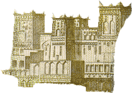 。その道々、初めてアーモンドの木を近くで見た。桜に似た白い花は2月に咲くのでまだ寂しい枝だけの状態だが、楽しみにしていたので満足。バスを降りると裸足の少年がいて、彼が道案内をしてくれた。本当はそんなのなしでもいいのだろうにどうしてかな、とも思ったがこれがこの辺の流儀なのかも知れない。最後にチップを渡していた。(写真はアムリディールのカスバで、下の絵は50DH札=邦貨500円程度=に描かれている画。その美しさが写真よりよくわかる。)