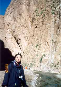 目の前の川を渡るのだと思うと不思議な興奮。確かにこれじゃ増水していたら渡れないなあ。川を渡ったところで下車。少し歩いて見学ということになる。確かにここはすごい。切り立った岩が天をつくように立っている。しかし、そのすごさは層雲峡や昇仙峡と比べてみて数倍すごいと言う感じはなかった。まあ、同じようなものだ。・・・順はバスの川渡り以外はあまり感激しなかったらしいが、則はかなりすごいと思った。我々が降りたあたりのバスの回転場近くにはホテルすらある。おそらくは避暑地として利用されているのであろう。