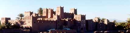 この街道もそんな雰囲気に包まれた寂れた荒れた道なのかと想像しながら車窓を眺めるが、全くそんな感じはない。今までと同じモロッコの風景が続く。つまり、荒涼とした大地を進んでいくと町並みが表れる。豊かなオアシス地帯が必ず点在しているのだ。当然かも知れないが、アトラス越えの時以上に町は多い。こうした町並みの近くにはやや高い丘があり、そこがカスバになっている。外敵から守るためには街道からそう遠くはないが、いくらか離れたやや高い場所にカスバはおおむね作られている。