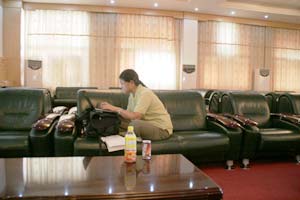 今夜も夜行列車。だが、18:00発なのに駅に着いたのは15:00。3時間もどうするの?と思っていたら、また有料待合室へ通された。今度はすごくいいソファーもあって貴賓室という名に恥じない部屋だ。一人5元也。勿論自分たちの負担。コーヒーを飲んだり少しウトウトしたりしながら時間をつぶした。こんなことなら交河故城でもう少し時間をつぶすべきであった。ガイド氏は何か案があるような口ぶりだったが、結局は待合室でただただ待った。待合室では、テレサ・テンの曲が流れ、わけても中島みゆきの「わかれうた」が何度も流れて印象深く残っている。でもこの待合室ほとんど我々だけのためにあるような、そして巨大な待合室だった。